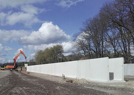 Aufstellen einer Fahrsilo-Anlage mit 92 Stck. Fahrsiloelementen vom Typ U250/300 und den dazu gehörigen 4 Stck. Betonfertigteiltreppen in 27232 Sulingen.